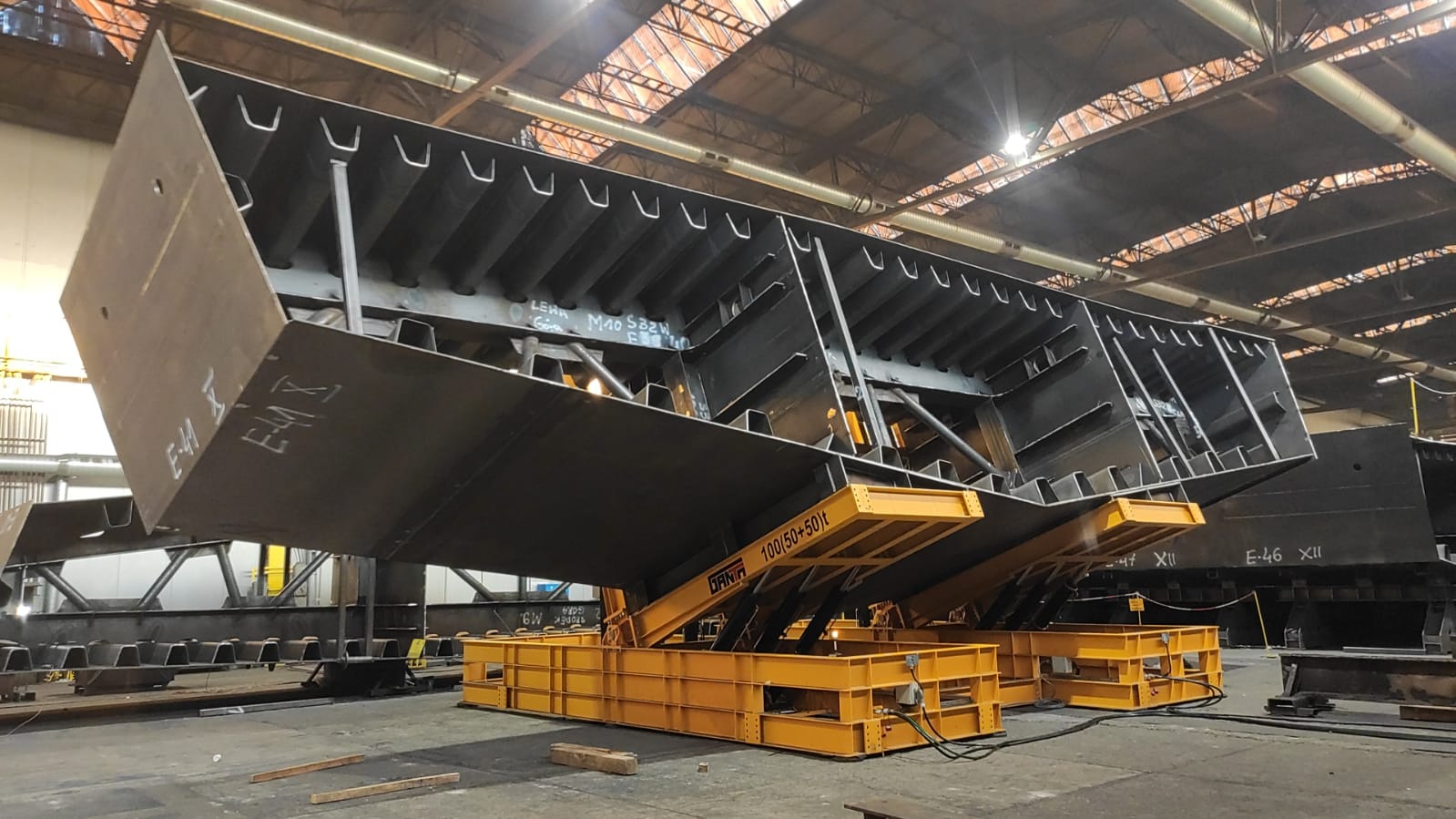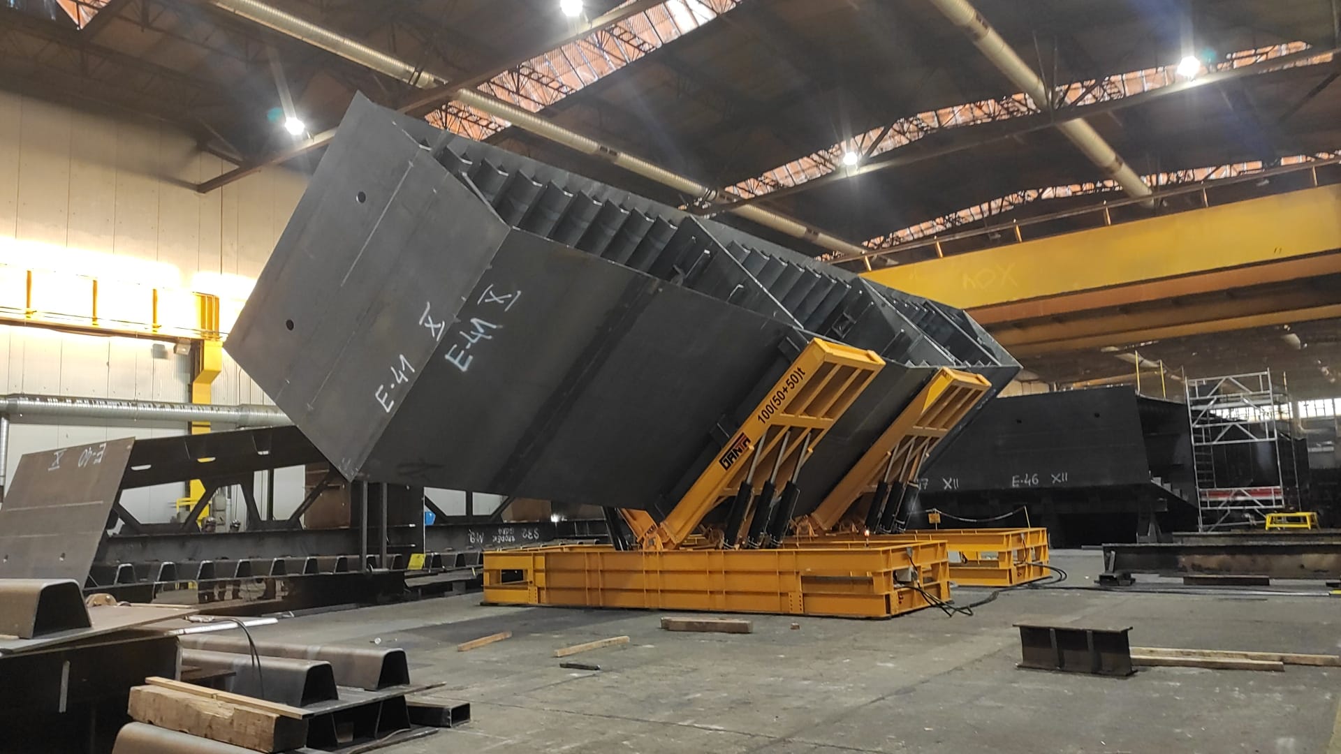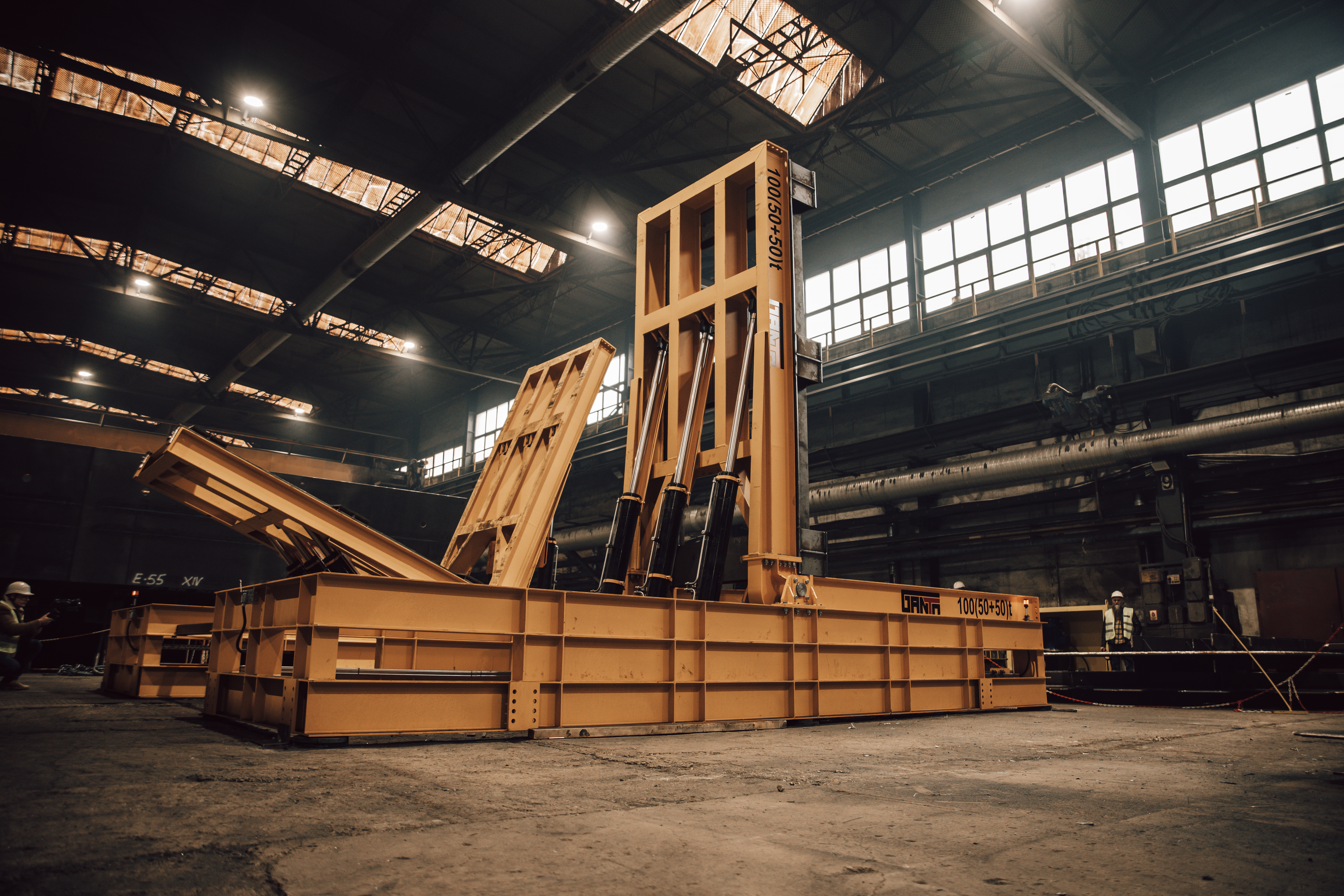 Obrotnik konstrukcji stalowych został zaprojektowany od podstaw w naszym biurze jako rozwiązanie problemu produkcyjnego jednego z naszych klientów. Po przeanalizowaniu procesu produkcyjnego została opracowana koncepcja obrotnika hydraulicznego.