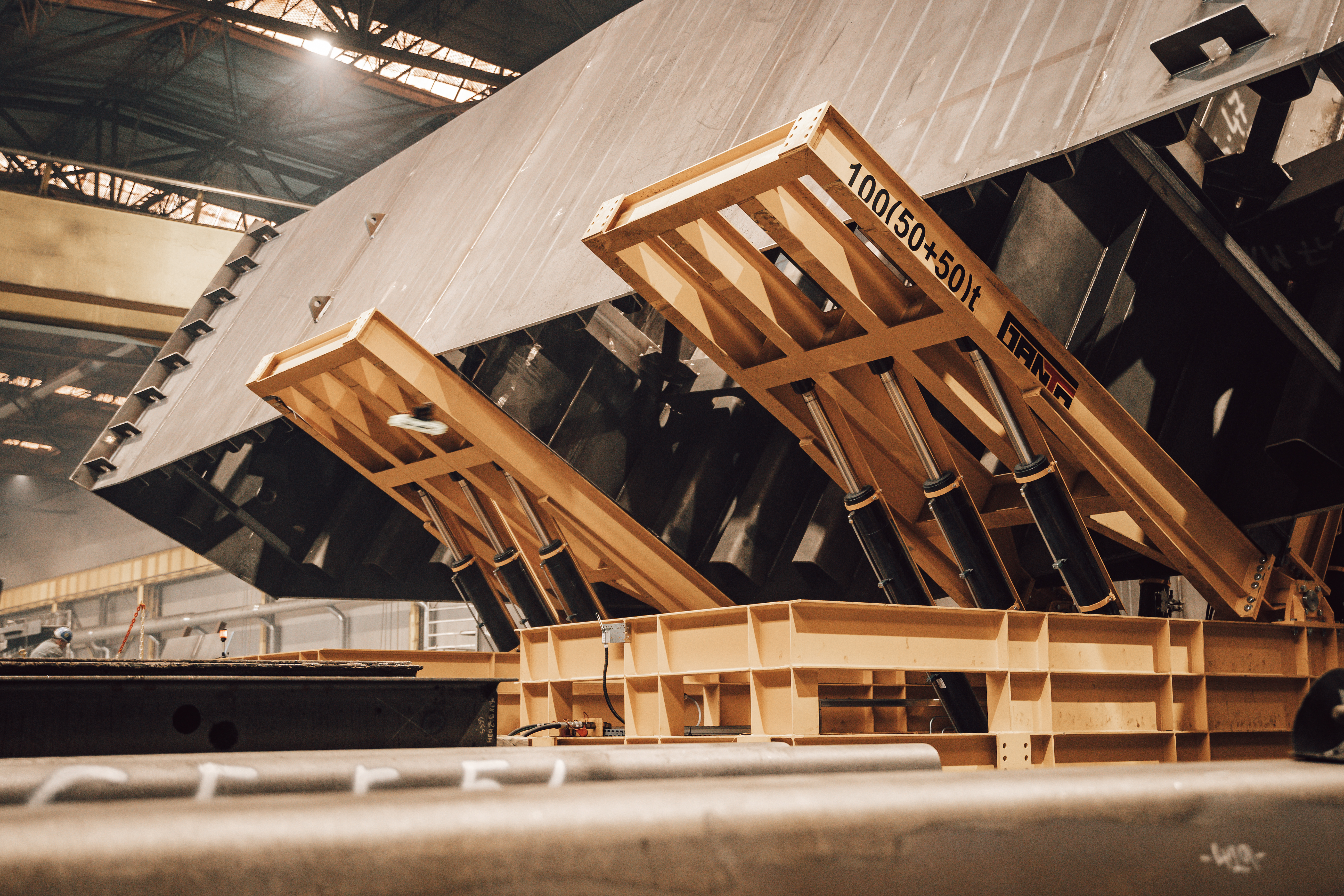 Obrotnik poruszany jest przez dwanaście siłowników hydraulicznych połączonych z jednym wspólnym zasilaczem.