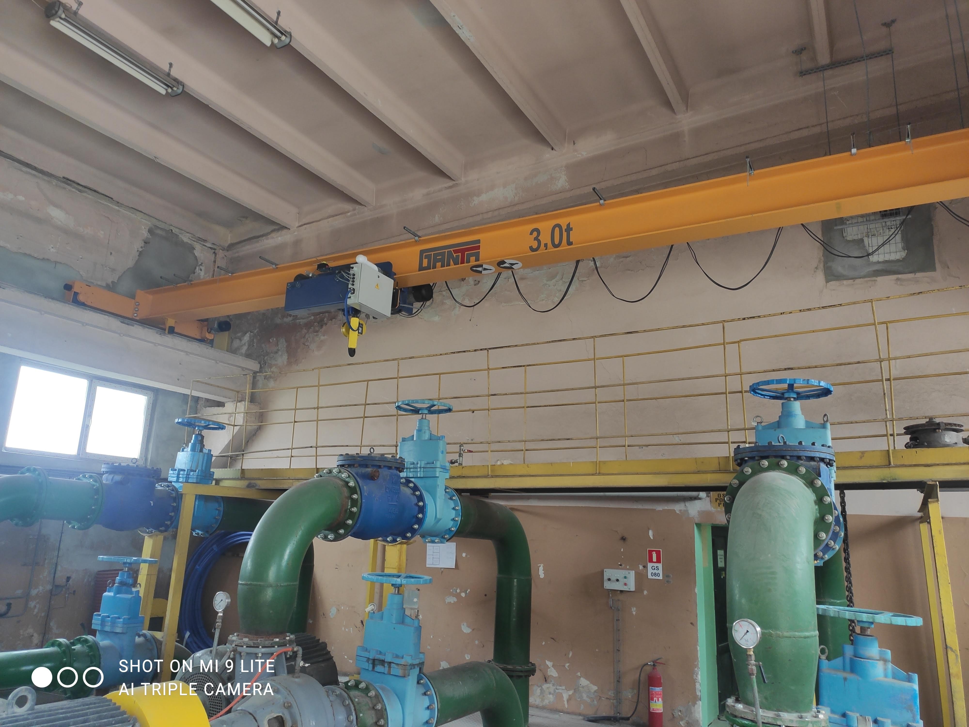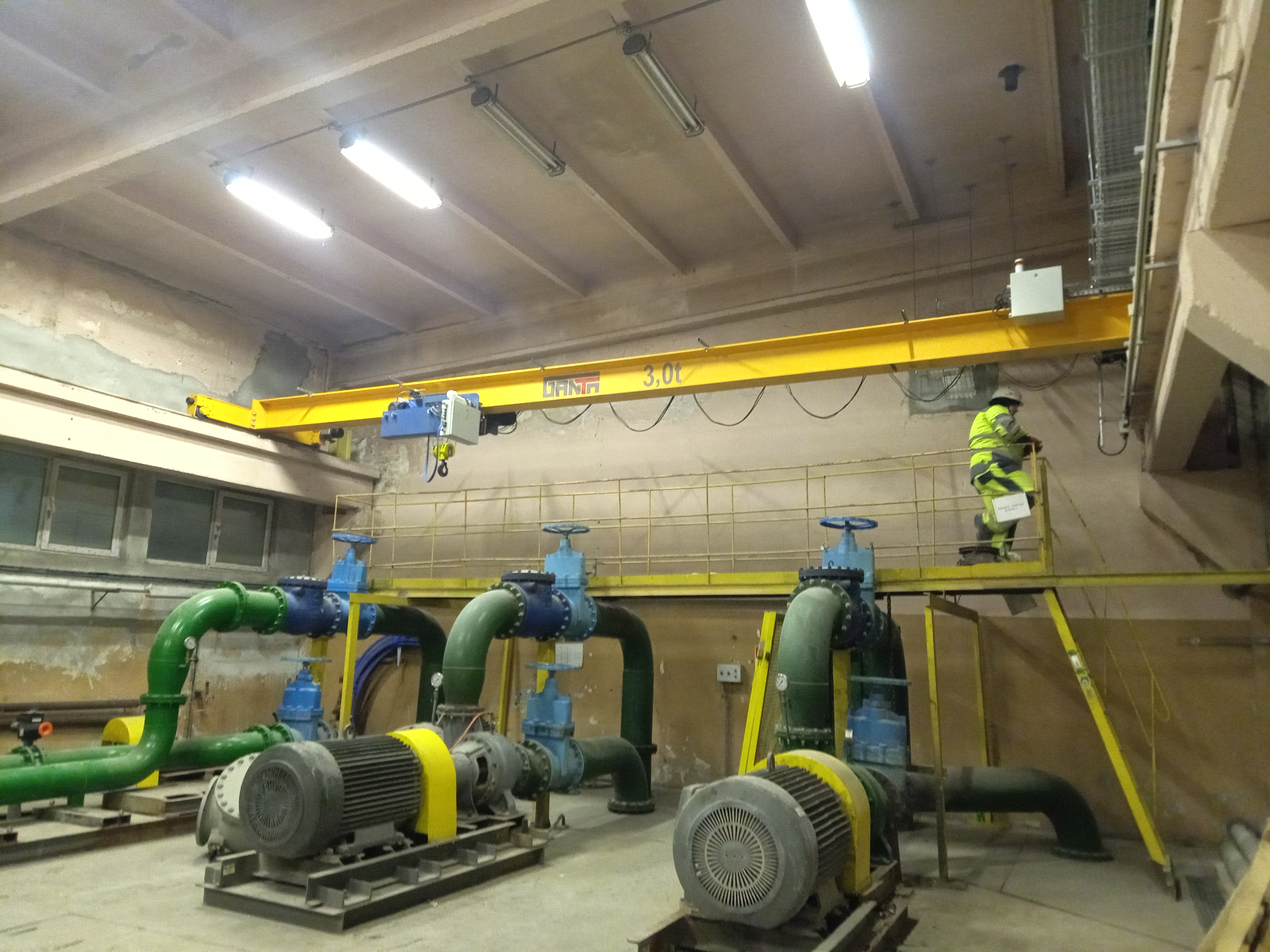 Suwnica pomostowa jednodźwigarowa o udźwigu 3t została przez nas zaprojektowana, wykonana i zamontowana w budynku przepompowni wody w cementowni HOLCIM Małogoszcz. Razem z suwnicą zamontowana została linia zasilania szynoprzewodem.