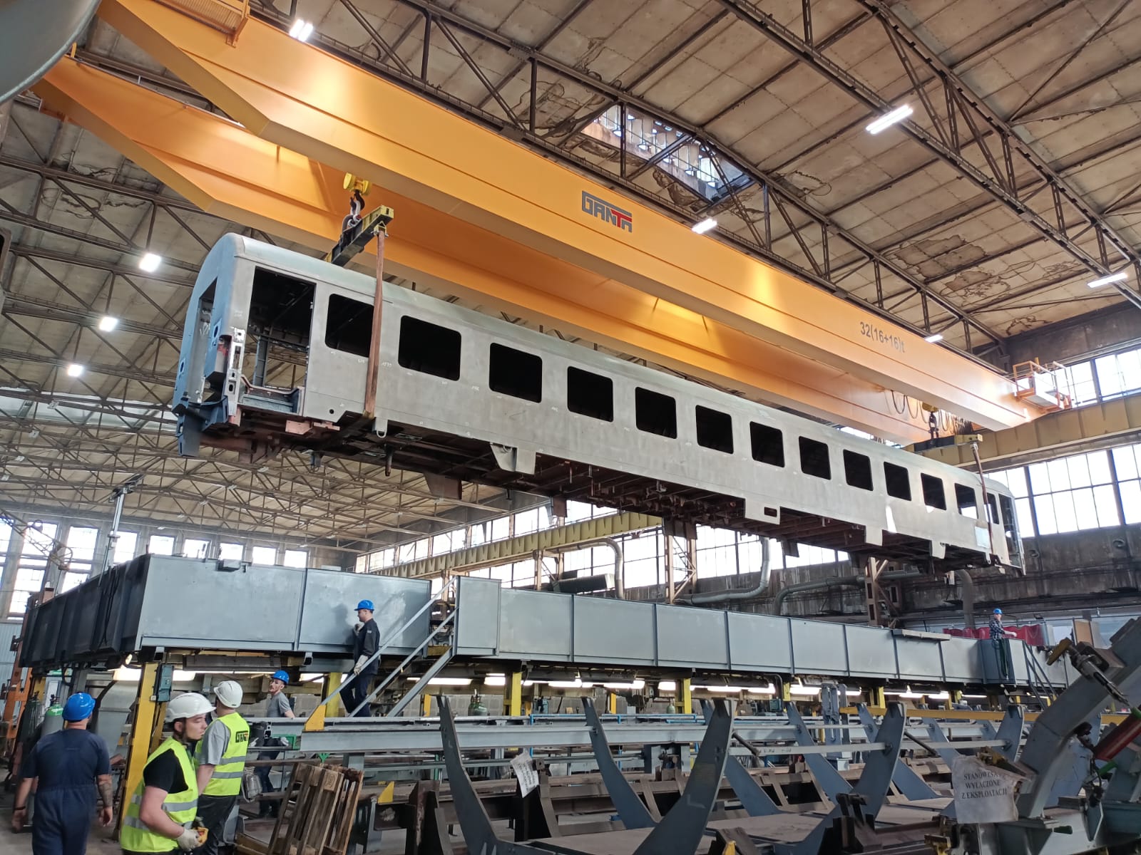Dla jednego z naszych klientów: Fabryki Pojazdów Szynowych H. Cegielski wyprodukowaliśmy i dostarczyliśmy suwnicę pomostową z dwoma wciągarkami o łącznym udźwigu 32t (16+16)t. Suwnica pracuje w hali produkcyjnej, w której wytwarzane są konstrukcje wagonów kolejowych.